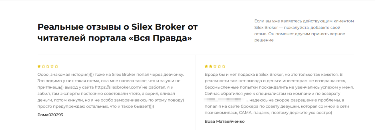 Брокерский сайт привлекает потенциальных клиентов стильным дизайном, описанием преимуществ и красивыми обещаниями. От этих слов веет мошенничеством и обманом. Возможно, поэтому в интернете отсутствуют о брокере Silexbroker положительные отзывы.