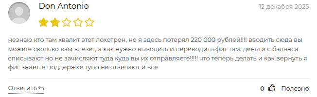 Про положительную репутацию можно забыть. Пользователи пишут о выдуманных разработчиками комиссиях и отсутствии вывода средств. К тому же, трейдеры утверждают, что обещания команда не выполняет.