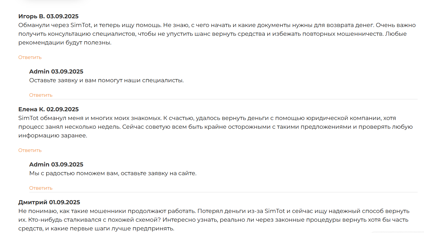 Simtot com: отзывы реальных клиентов