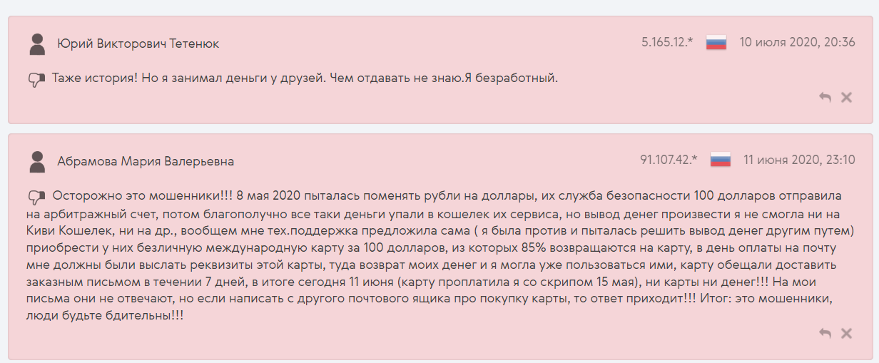 - В сети можно найти множество негативных отзывов об обменнике, что говорит о крайне высоких рисках обмана со стороны владельцев этой площадки.