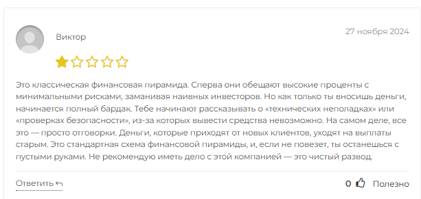 Скрытые торговые условия, отсутствие кейсов и публичных отчетов дополняют негативную картину. Вы можете поделиться своими впечатлениями о компании в комментариях под обзором.