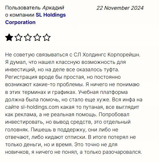 - в сети уже появились негативные отзывы о Sl Holdings com.