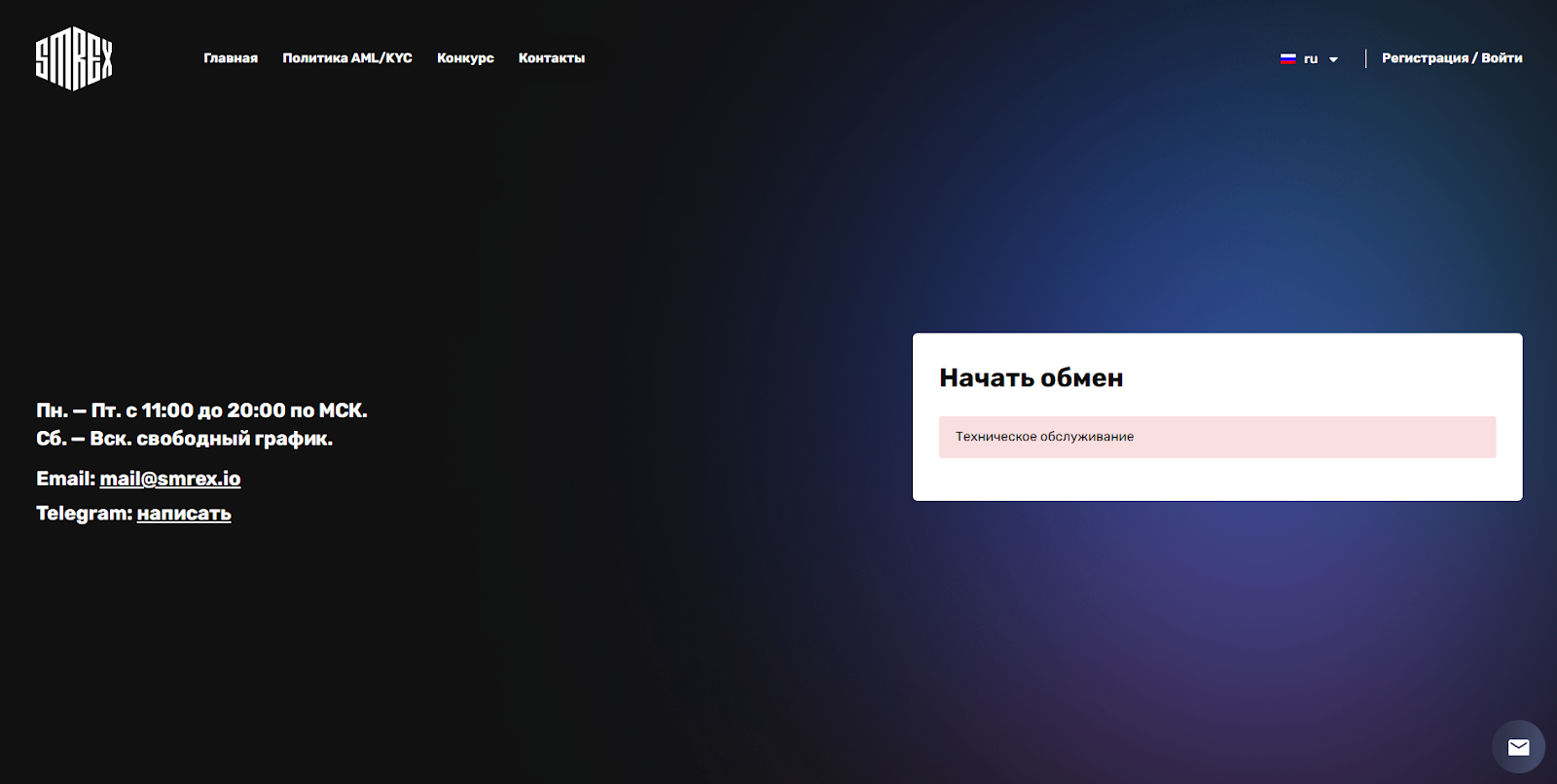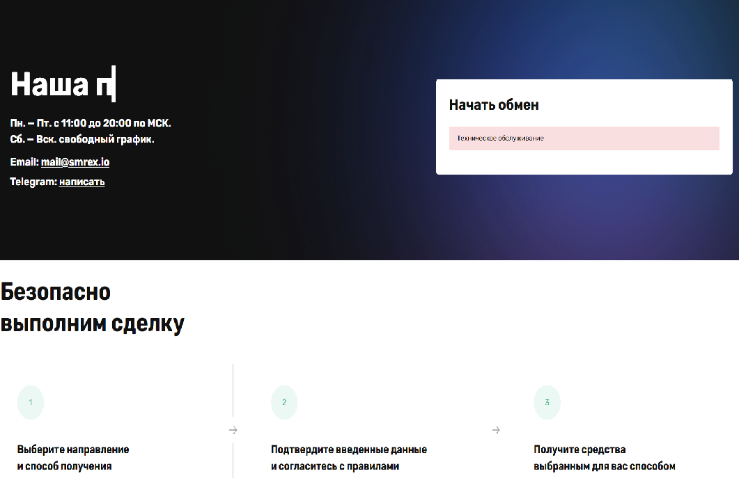 В преамбуле нашего обзора мы обещали рассказать о процессе обмена, но 13 сентября 2025 года на платформе SmrEx проводилось тех. обслуживание, которое помешало нам тщательно рассказать о нём.