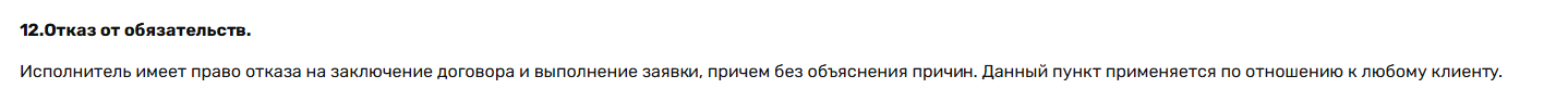 - пункт правил, позволяющий сервису отказать в обслуживании без объяснения причин лишает клиентов гарантий и защиты их сделок;