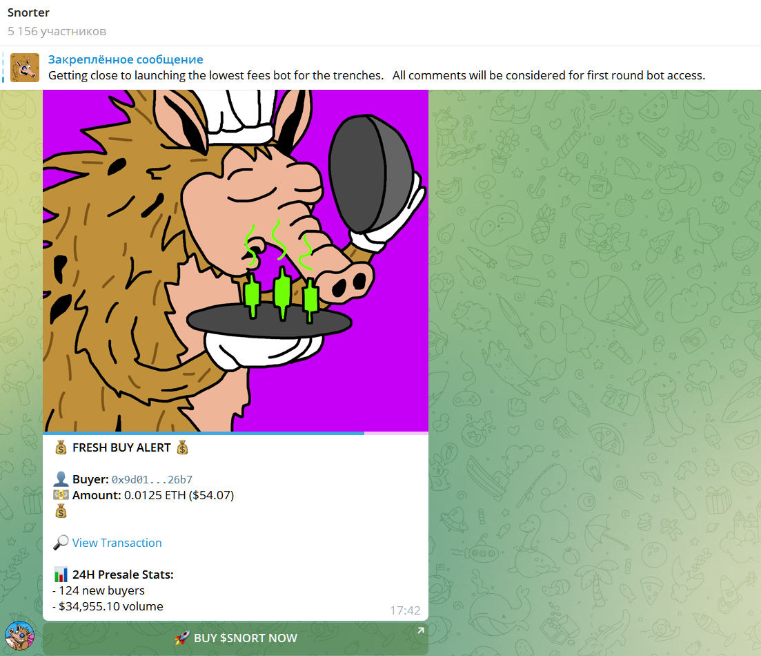 Будет навигация по нескольким платформам при торговле в Telegram, возможность проведения транзакций менее чем за секунду. Обещают, что Snorter token bot будет предлагать минимальную комиссию за покупку и продажу мем-коинов.
