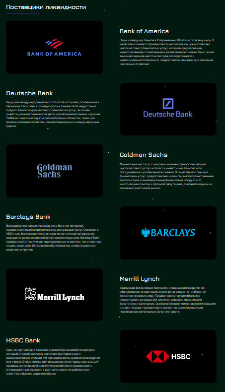 Нигде в интернете эта информация не подтверждается, поэтому мы вручную проанализировали сайты представленных организаций, но и там брокер не упоминается. Есть риск, что банки упоминаются только для того, чтобы «пустить пыль в глаза» и исказить восприятие трейдеров.
