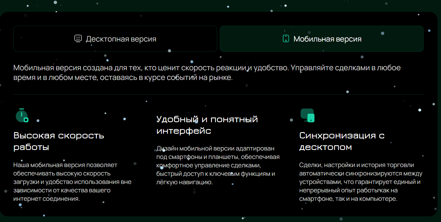 Как и сам сайт, платформа кажется максимально шаблонной, поскольку ни о каких аналитических инструментах и разнообразии ордеров не идет и речи. Пользоваться такой системой неудобно, особенно для долгосрочных инвестиций, так как подобный терминал обычно используется для торговли бинарными опционами.