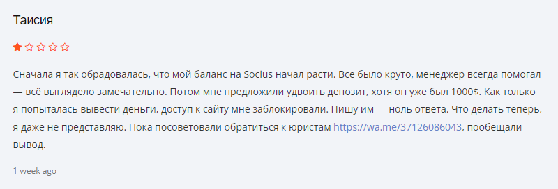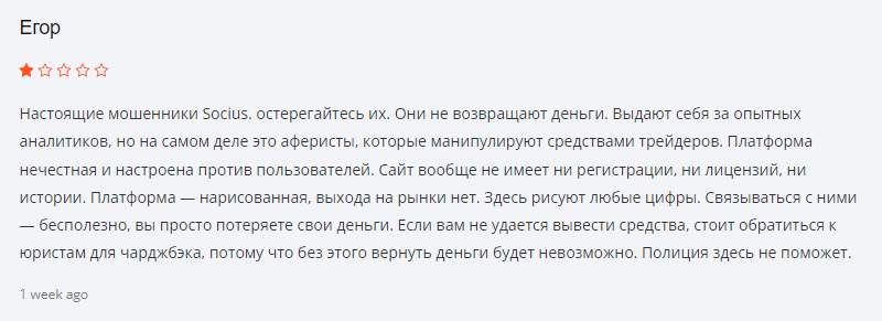 Брокер Socius, вероятнее всего, ведет мошенническую деятельность, на что указывает ряд факторов: