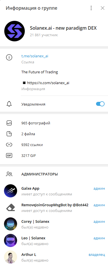 Помимо сайта биржа имеет телеграмм-канал Solanex ai new paradigm DEX с ником Solanex ai. На январь 2025 года на него подписано более 21 тысячи человек. В профиле указана ссылка на страницу в Twitter.