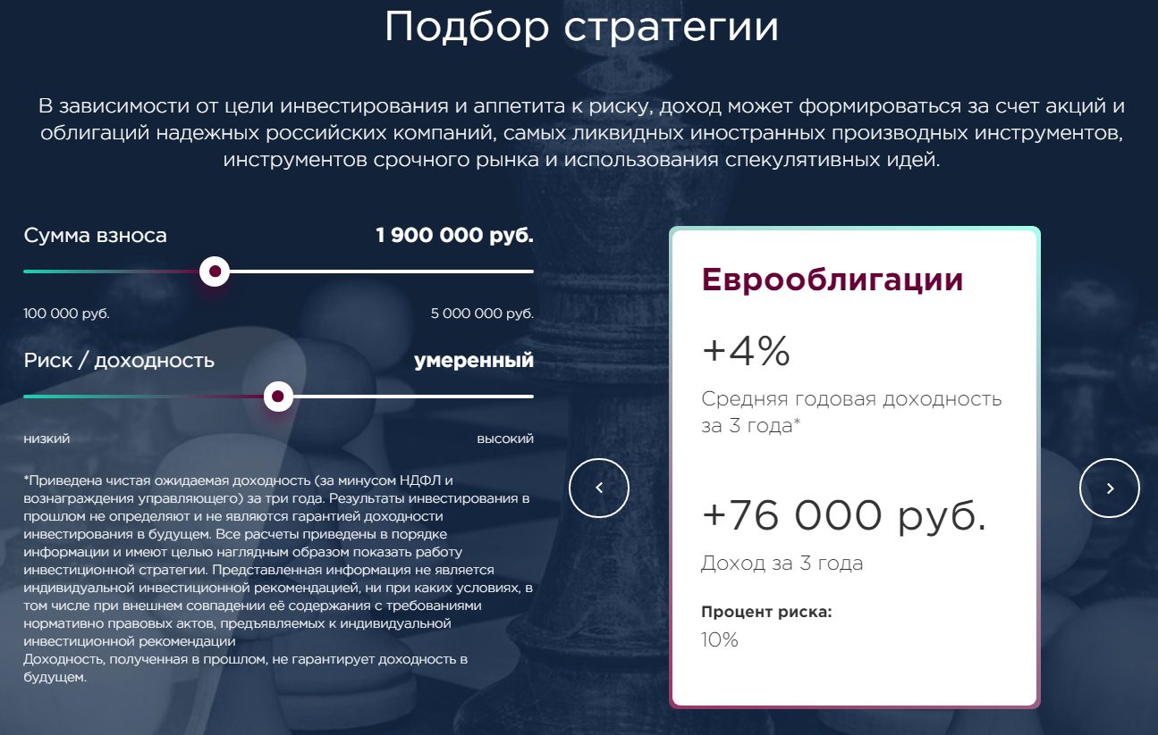В рамках доверительного управления компания подбирает оптимальную для конкретного инвестора стратегию в зависимости от его финансового опыта и индивидуальных предпочтений. Для этого определяется риск-профиль клиента и под него подбирается портфель.На официальном сайте АО ИФК Солид регулярно публикуется актуальная аналитика и финансовые новости.