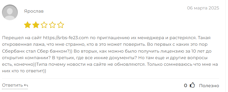 Обзор проекта Srbs Fe23 com: отзывы клиентов, проверка надежности брокерской компании Србс Фе23