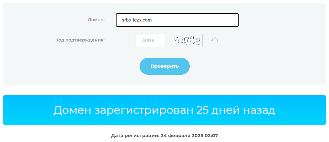 - домен Srbs Fe23 com зарегистрировали менее месяца назад, это еще раз говорит об отсутствии связи с настоящим банком;
