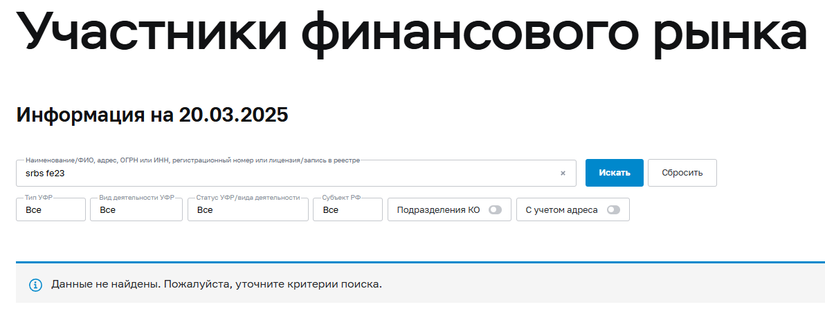 Помимо того, что пополнение баланса в обменнике Srbs Fe23 происходит через P2P-перевод, что уже несвойственно для такой крупной компании, есть и более очевидные вещи. Любая законная финансовая организация должна быть зарегистрирована Центральным Банком РФ. Поиск же показывает, что Srbs Fe23 com такой регистрации не имеет, а значит, работает нелегально – это было бы невозможно, если бы сервис действительно был связан со Сбером.Ни в одном из ресурсов настоящего банка, конечно, брокер не упоминается. Создан же сайт был вообще менее месяца назад – это может проверить абсолютно каждый через специальные сервисы. Шанс того, что такой проект может иметь отношения к крупнейшему российскому банку, практически нулевой.