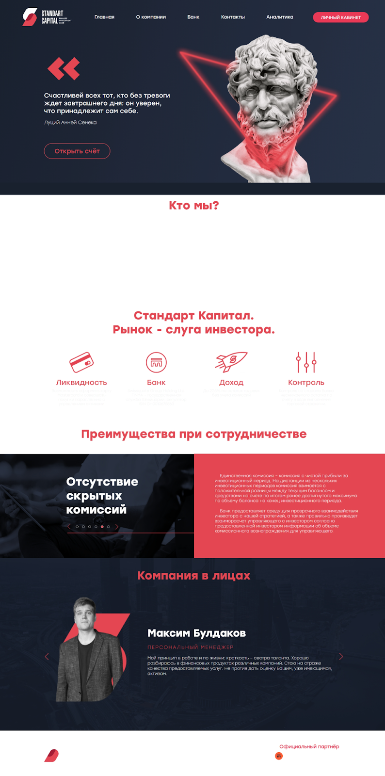 Видимые преимущества Standart Capital нам предоставляет сам сайт: