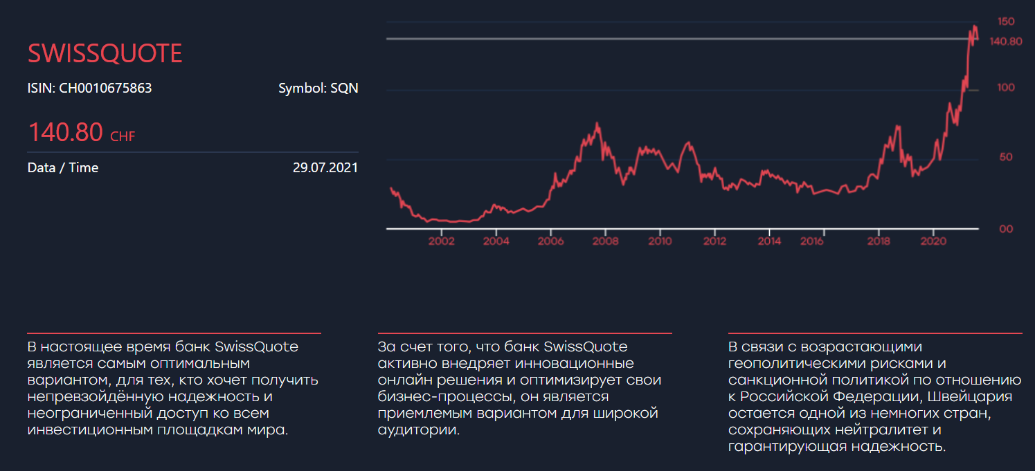 • всегда свободная ликвидность, благодаря партнеру брокера – швейцарскому банку Swissquote, доступному по всему миру;