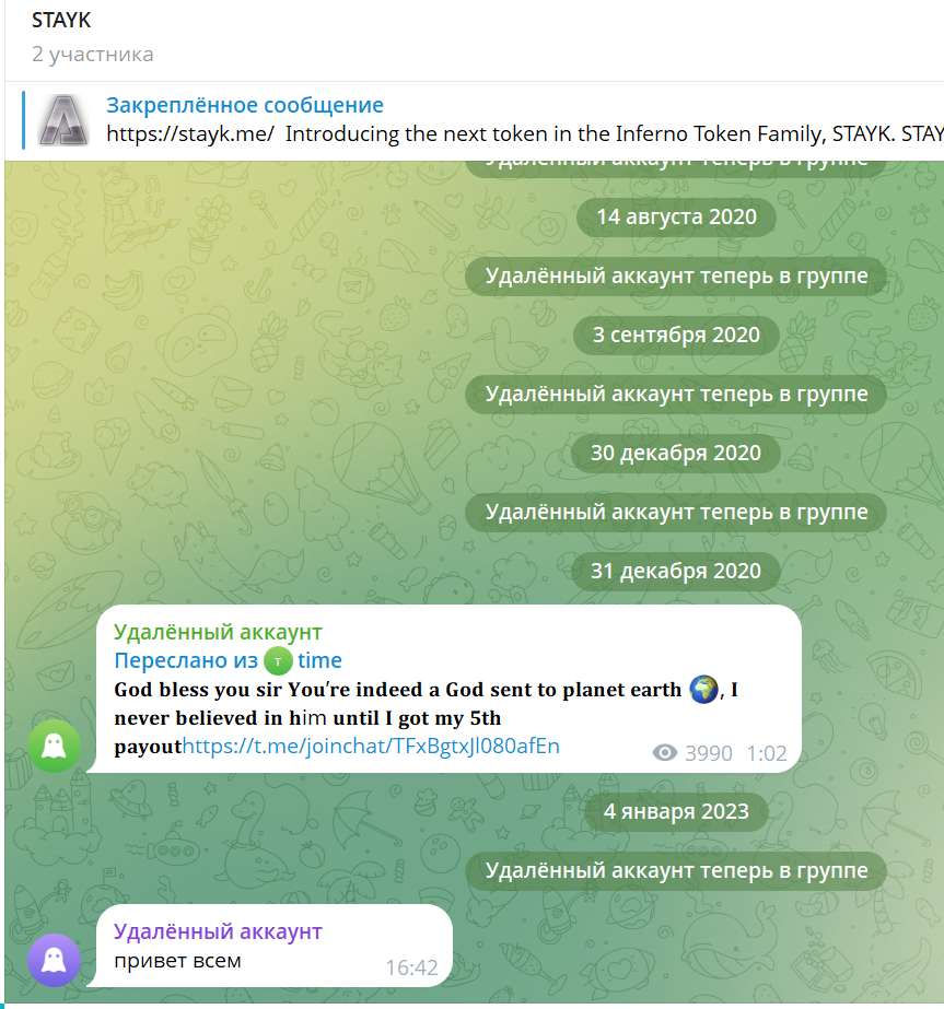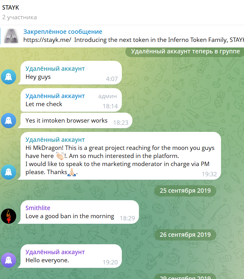 В сети отзывов о Stayk нет, а в группе Телеграмм писали только положительные комментарии или просто здоровались. Многие пользователи верили в токен, но каких-либо подробностей никто не высказывал, поэтому неизвестно, удалось ли хоть кому-то заработать на стейкинге.