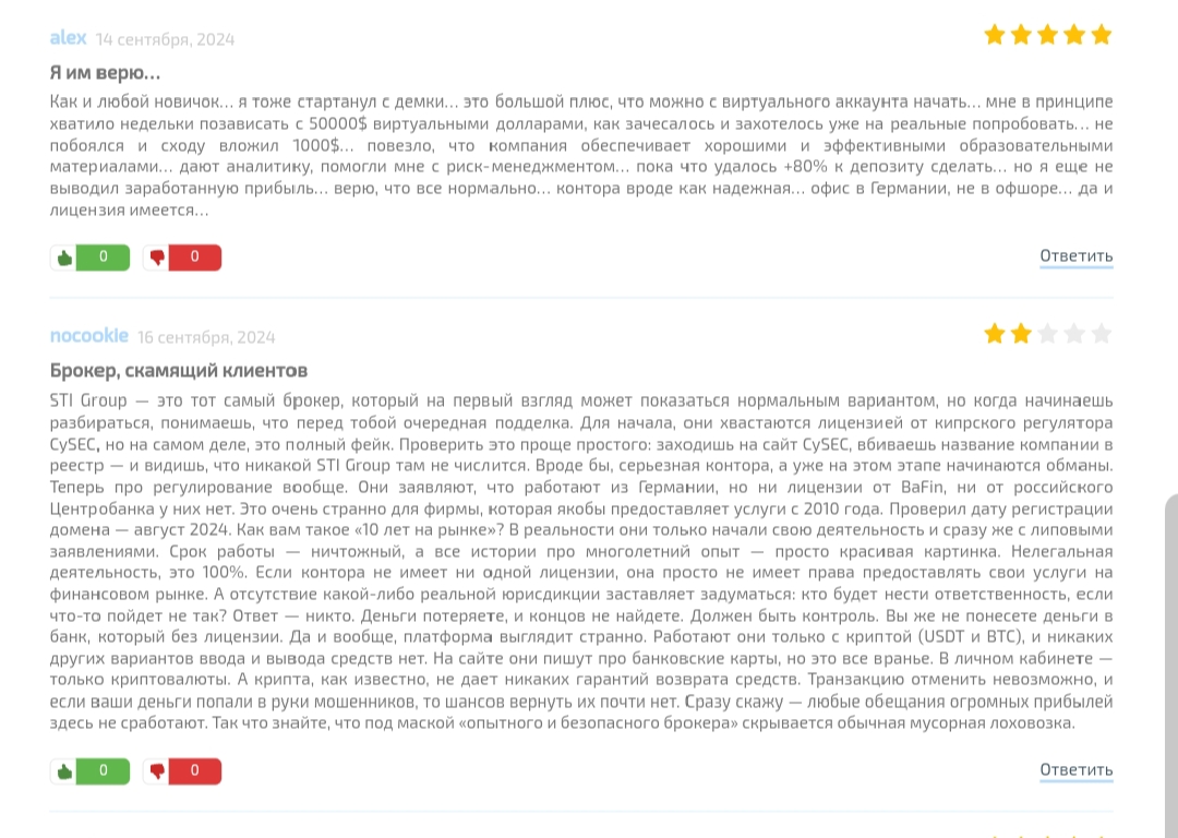 Правда мало что поможет перекрыть настоящие жалобы от реальных людей. И вот что особенно настораживает: клиенты массово пишут о том, что не знают, как вывести деньги с STI Group.
