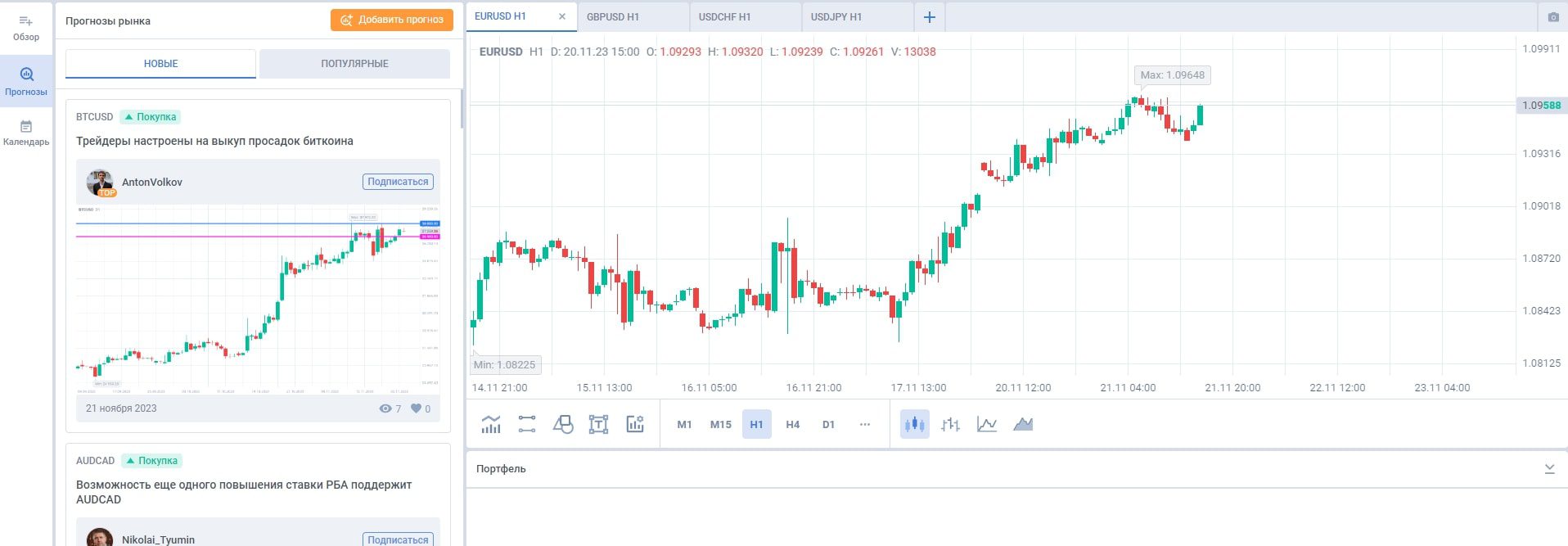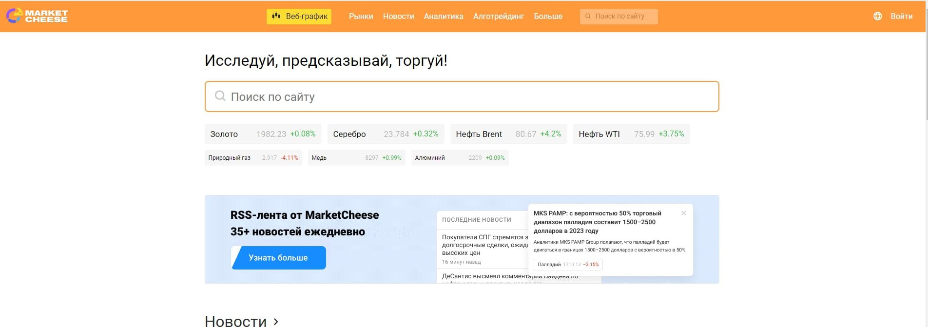 Алготрейдинг, который предлагается брокером, заключается в запуске специального бота, который будет заключать сделки, основываясь на сигналах экспертов. Все прогнозы подгружаются с MarketCheese — информационного и новостного финансового портала.
