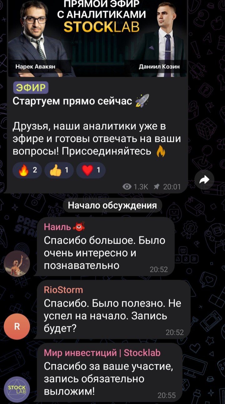 Судить о репутации платформы все же можно. Есть активный Telegram-канал “Мир Инвестиций Stocklab”, насчитывающий около 10 000 подписчиков. Подписчики умеренно активные, смотрят посты и оставляют комментарии.