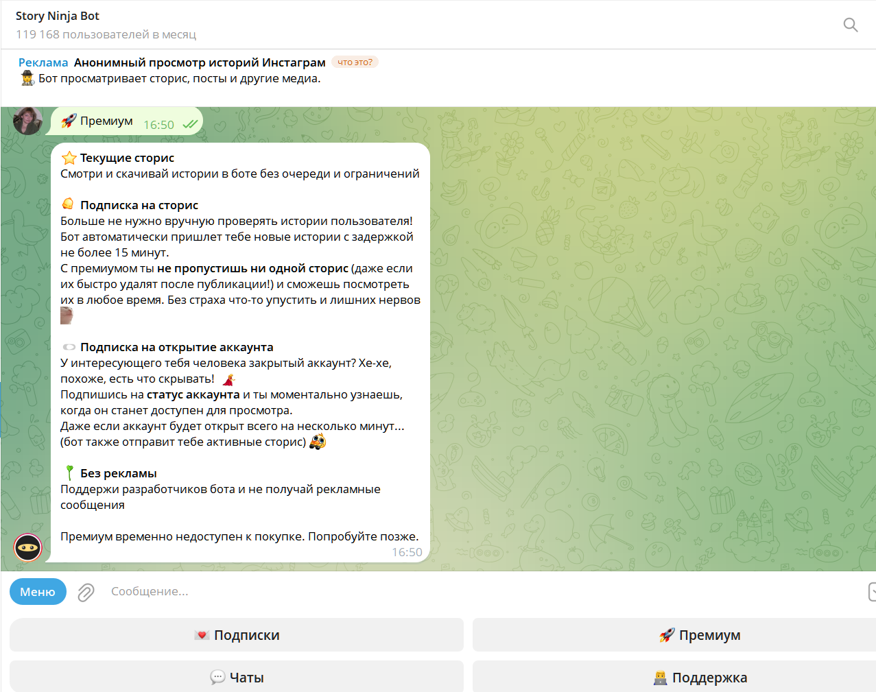 Обзор ТГ бота story ninja bot: отзывы, функционал, проверка на скам