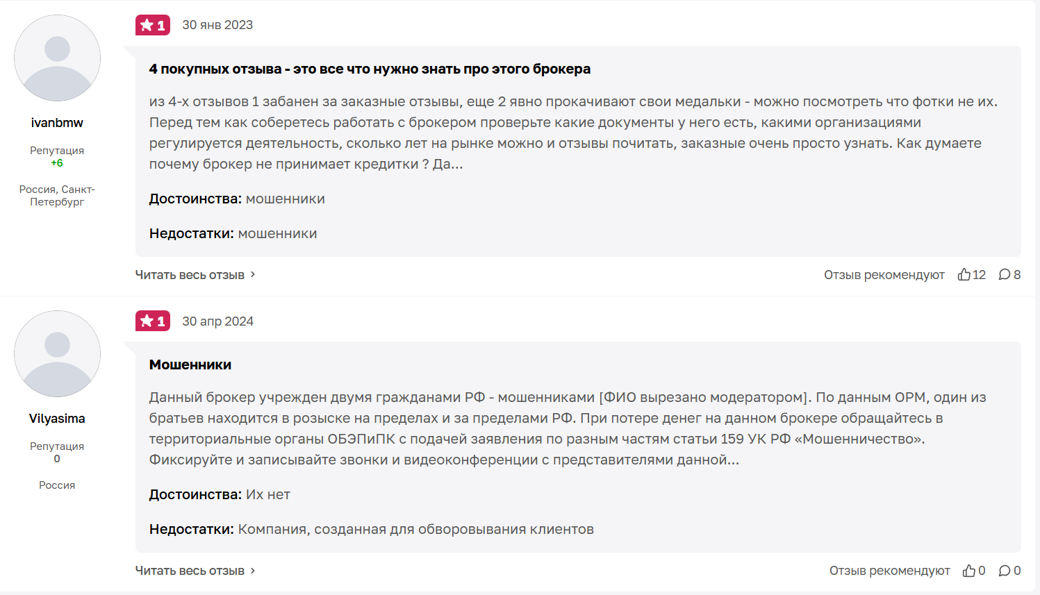 С одной стороны, брокер выглядит надежным, тем более, есть комментарии, где пишут, что «СтриФор» всегда платит, но смущают обвинения в мошенничестве, обмане и наличие мнений о том, что отзывы поддельные, поэтому сотрудничать с площадкой мы не рекомендуем.