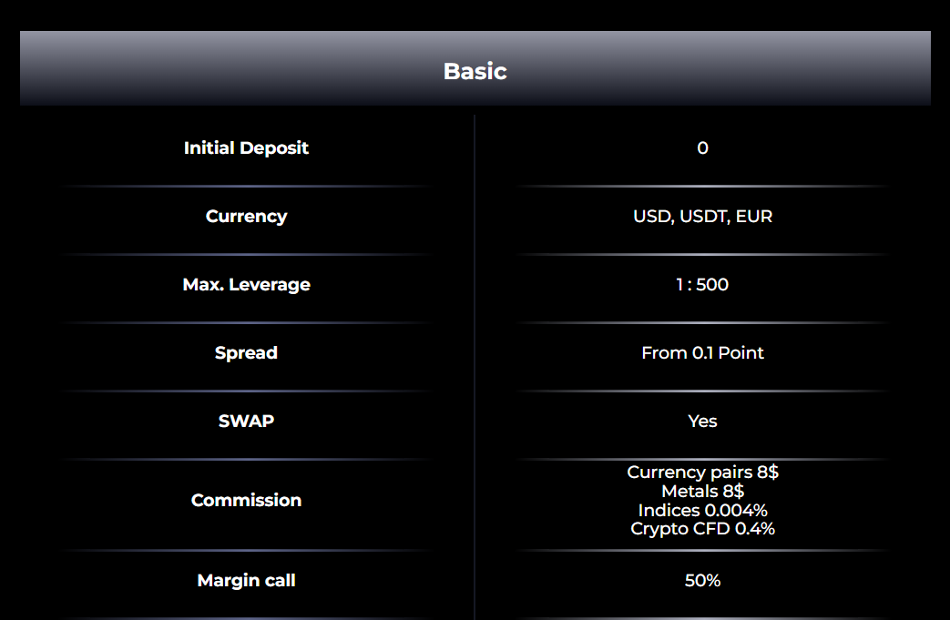 • Basic – нет минимального депозита;