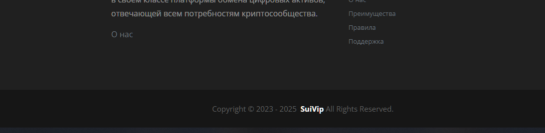 Техподдержка клиентов ведется только в онлайн чате аккаунта и в ТГ канале suivip manager support. Других контактных данных для связи с администрацией сервиса не предоставлено.