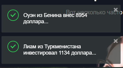 Мы обратили внимание, что для привлечения клиентов к совершению инвестиций на сайте платформы Summitsphere периодически появляются всплывающие окна. В них указано, что якобы человек совершает инвестицию в данный момент на какую-то сумму.