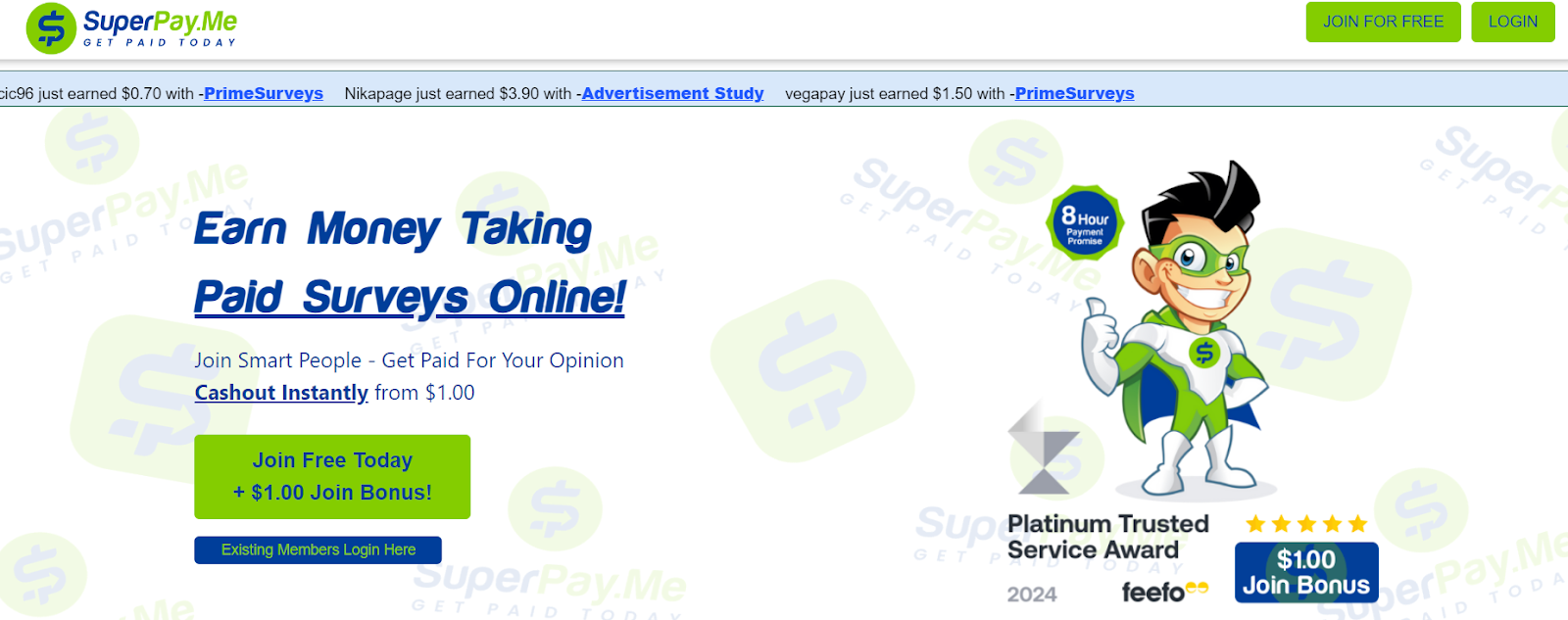 Если пролистать вниз главную страницу, то можно познакомиться с приглашениями заработать деньги на сайте. Для этого компания будет предлагать проходить различные опросы, испытания, просмотры видеороликов. За выполнение заданий на Super Pay будут начисляться определенные вознаграждения.