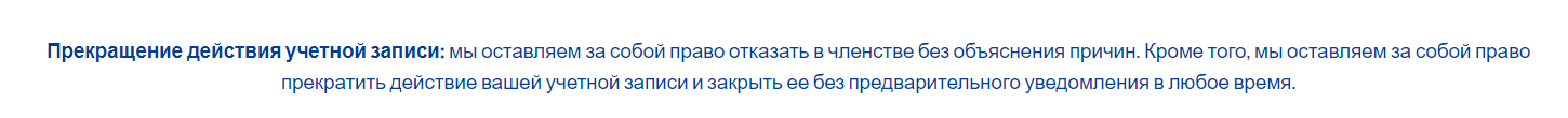 Разработчики указали в правилах, что сотрудничество может быть расторгнуто в одностороннем порядке.