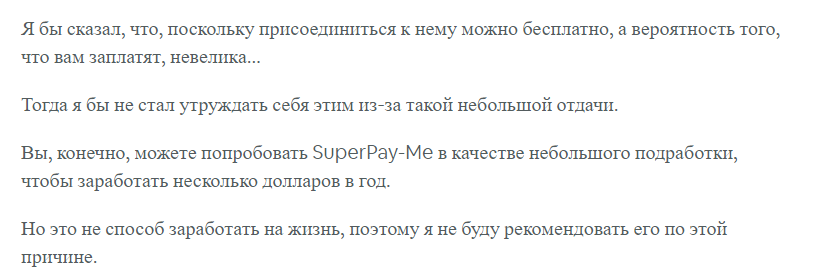 На сторонних ресурсах публикуются отрицательные отзывы о Super Pay. В негативных комментариях указывают, что платформа не дает вывести заработанные деньги. Люди жалуются на то, что техподдержка работает недостаточно хорошо.