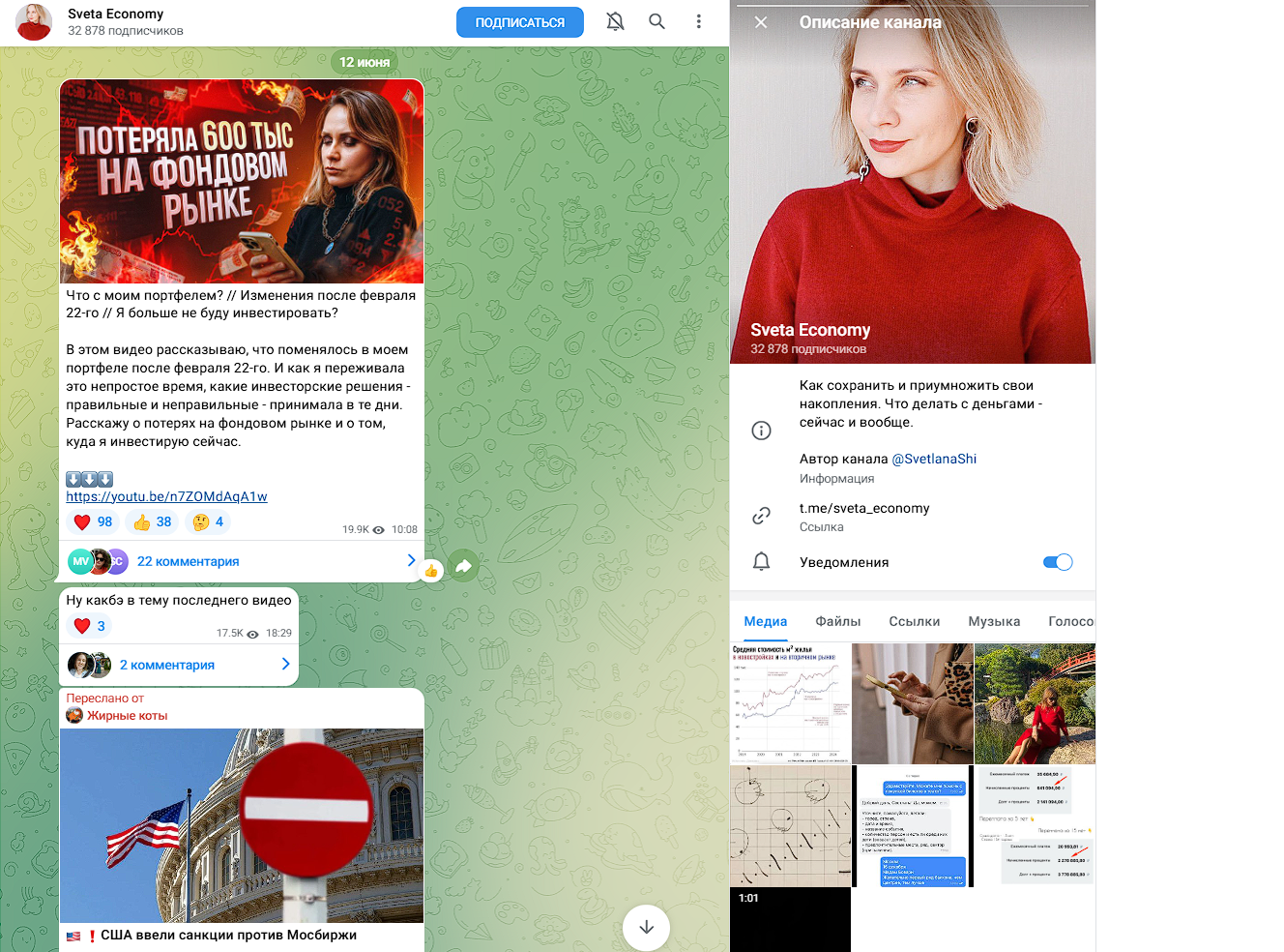 Внутри канала sveta economy отсутствует удобная навигация, что осложняет работу с ранее опубликованным материалом. Также большое количество кликбейтов по рекламным постам, где заголовок не имеет ничего общего с содержимым. Автор зарабатывает на реферальных ссылках из партнерских программ.
