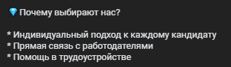 Сообщество предлагает индивидуальный подход к каждому человеку, обещает связь с работодателем и помогает в трудоустройстве, что и является главной задачей подобных групп.