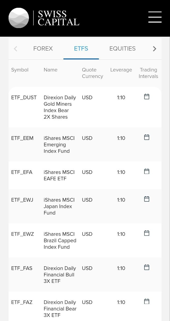 Условия торговли на сайте определяются тем, какой рынок и биржу вы предпочитаете для торговли на сайте проекта «Свисс Капитал». Например, можно использовать валютные пары на FOREX, а можно торговать способом EQUITIES с торговым плечом 1:10 и получать право собственности на определенные активы. Есть возможность использовать и индексы с левериджем 1:33, биржевые товары с тем же кредитным плечом. Можно сложиться с другими инвесторами по принципу ETF и вложить общие средства в набор активов с левериджем 1:10.