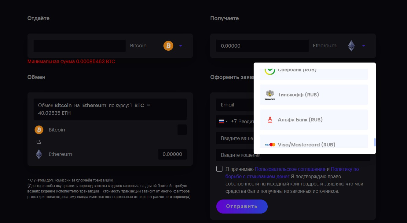 Мы не рекомендуем работать с этим криптовалютным обменником, поскольку риск потерять деньги, связавшись с анонимной площадкой, достаточно высок.