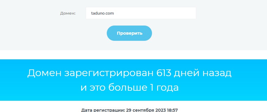 Мы проверили возраст домена проекта и выяснили, его зарегистрировали в сентябре 2023 года, хотя на сайте написано, что платформа работает с 2022 года.