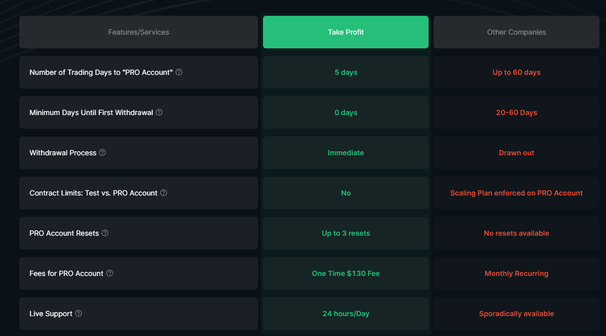 По заявлениям создателей, они имеют сильные стороны. Из них можно выделить: круглосуточную службу поддержки, единоразовый платеж за ПРО аккаунт в 130 долларов, минимальные комиссии, отсутствие задержки депозита и вывода средств. Становится понятно, что несмотря на минусы, Take Profit Trader также старается обеспечить своих клиентов множеством плюсов, которых нет у конкурентов.Служба поддержки