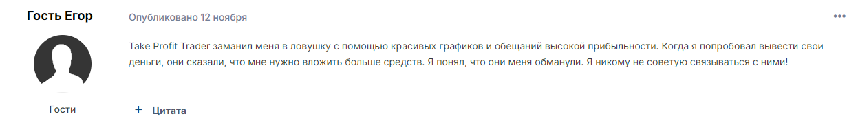Настоящие отзывы о «Тейк Профит Трейдер»