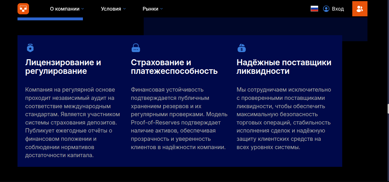 - Лицензирование и регулирование. Брокер проходит независимых аудит соответствия международным стандартам. Кроме этого, биржа является участником страхования депозитов.