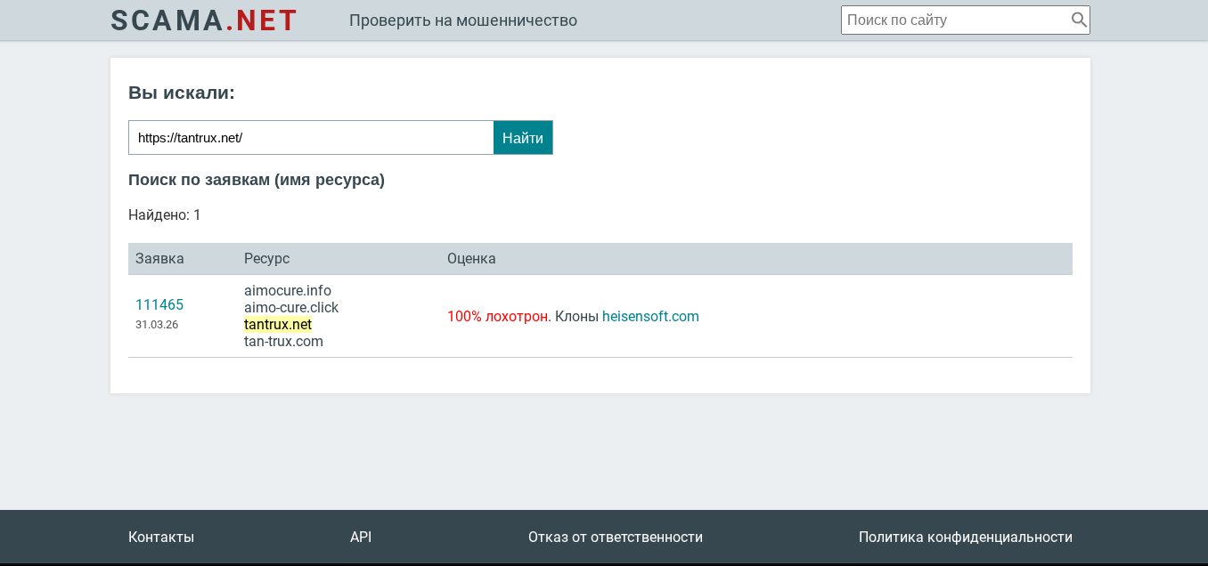 Через сервис Scama net наша редакция узнала, что проект является частью мошеннической финансовой сети. У брокера Tan Trux есть 3 клона: Heisensoft com, Aimocure info, Aimo-cure click. Если один из них находится в блоке, то все остальные продолжают работу, и схема продолжается до полной блокировки сетки