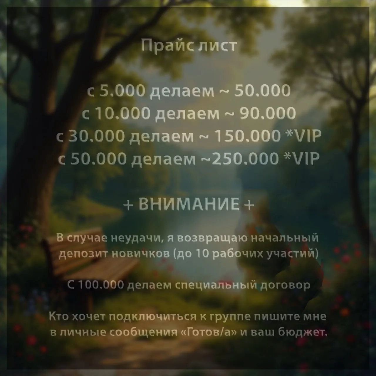 Легенда такая: Татьяна работает на бирже 8 лет, может стабильно зарабатывать большие цифры и создает чат, в котором каждый может получить помощь. В условиях написано, что администратор проекта зарабатывает 20% от стартового депозита за предоставление сигналов для открытия сделок. Остальные деньги — прибыль пользователя.