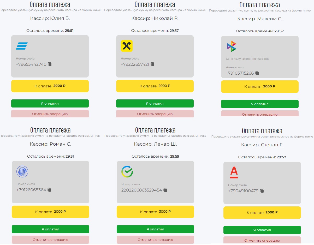 Пополнение баланса проводится только на счета кассиров-мерчантов, они доступны для таких банков: Сбербанк, ВТБ, Райффайзен банк Аваль, Альфа банк, Газпромбанк, а также через Систему быстрых платежей. Установлена минималка 2000 руб., для Сбербанка — 3000 руб.