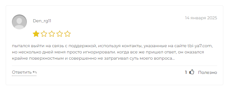 Оставьте Ваш отзыв о работе с Tbi Ya7