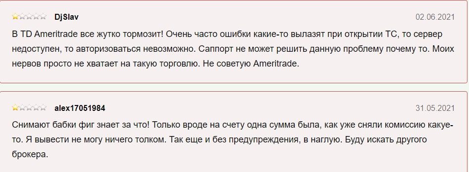 В сети можно найти большое количество негативных отзывов, TD Ameritrade открыто называют лохотроном. Многие обращают внимание на то, что посредством TD Ameritrade не только не получится заработать, но и нельзя вернуть с платформы депозит.