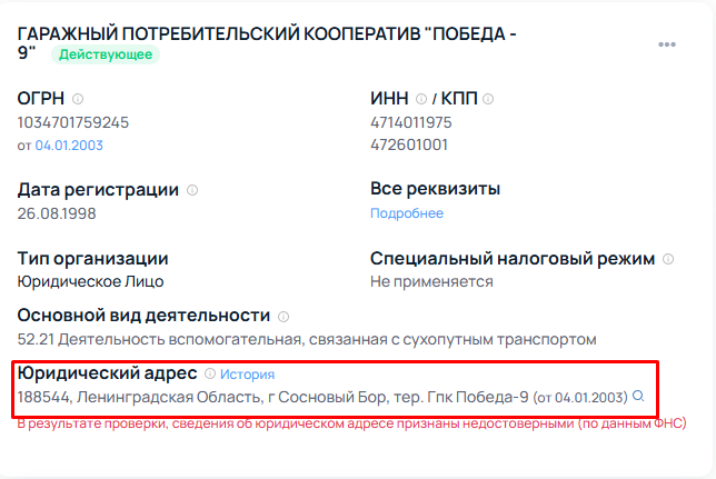 Гаражный Потребительский Кооператив «Победа-9» занимался сухопутными грузоперевозками. В 2025 году данные о деятельности неизвестны, так как в ходе проверки ФНС они были признаны недостоверными.