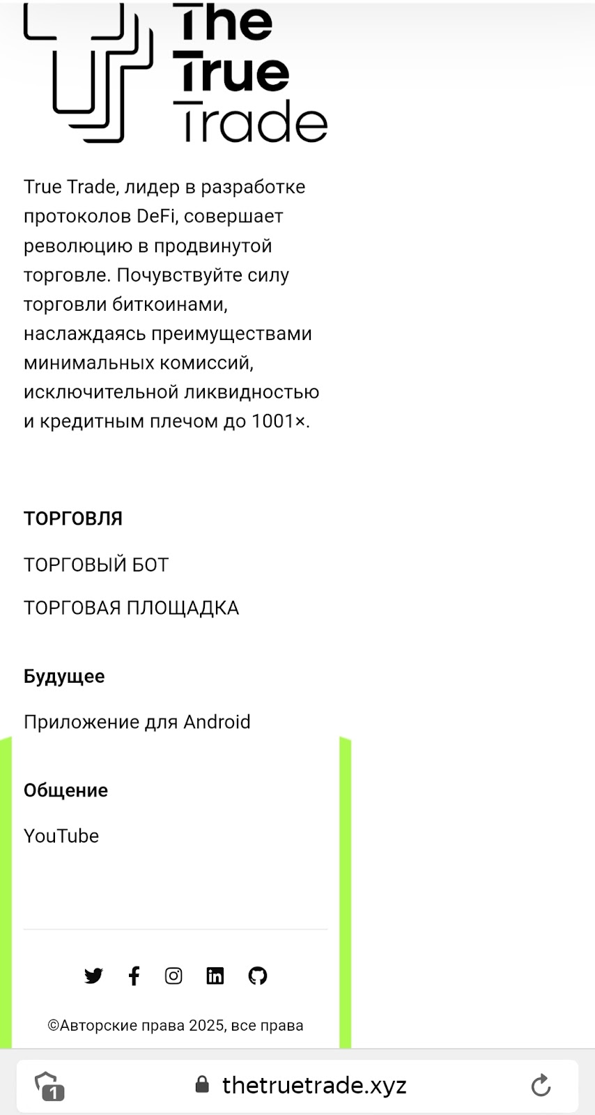 Обзор официального сайта и социальных сетей «Зе Тру Трейд»