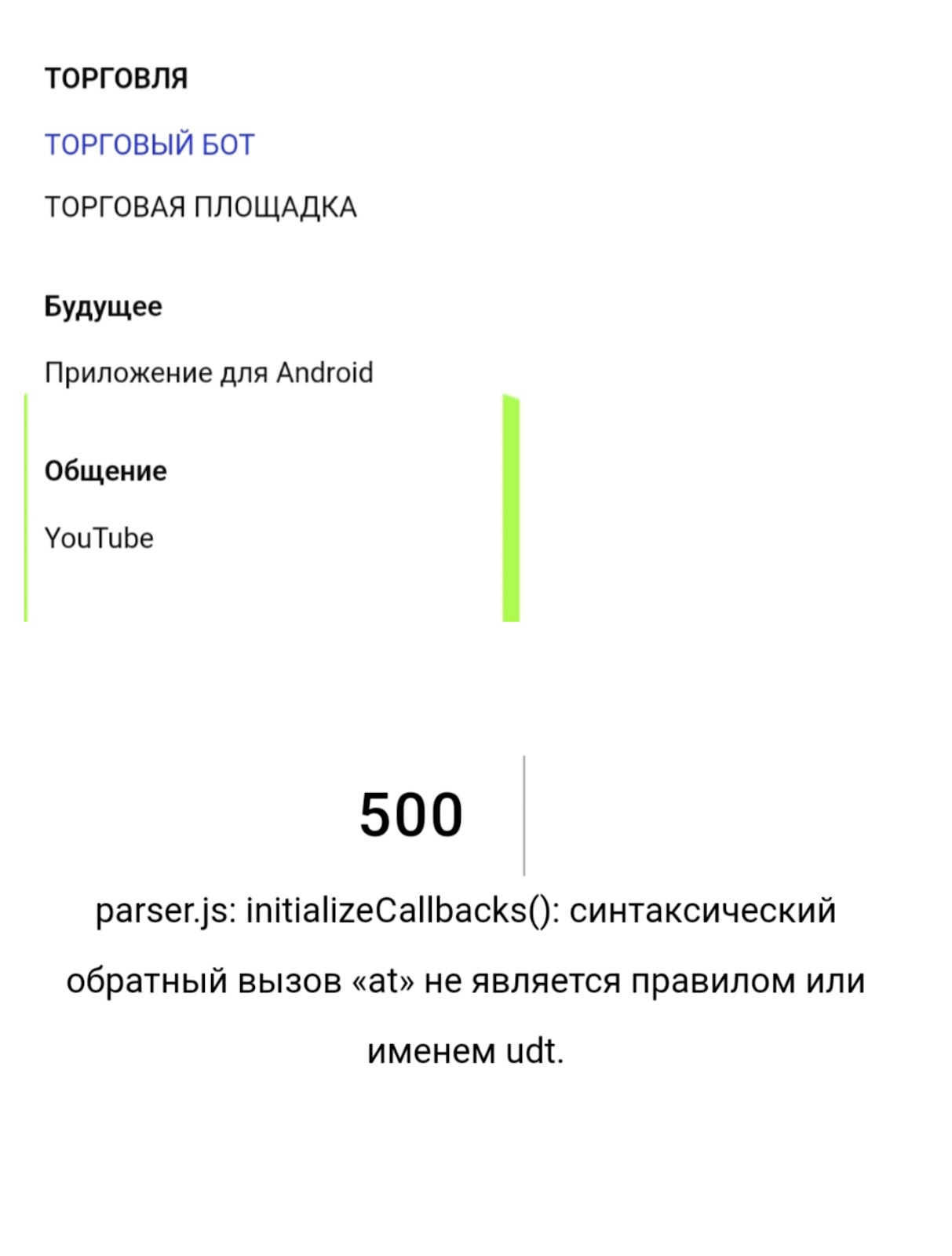 Иногда площадка работает со сбоями: пример, при нажатии на кнопку «Торгуйте прямо сейчас» пользователь переходит на нерабочую страницу.