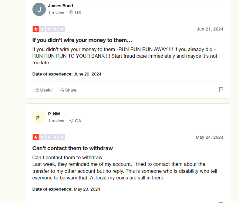 Пользователи говорят, что площадка разочаровала, принесла убытки, прибыль на этой платформе получить нереально. В тот момент, когда трейдер хочет снять часть доходов, звонит другой брокер и говорит, что менеджер по работе с клиентами получил повышение и перешел в другой отдел. Вывод средств затягивается, и потом аккаунт просто блокируют. Много трейдеров потеряли свои деньги безвозвратно.