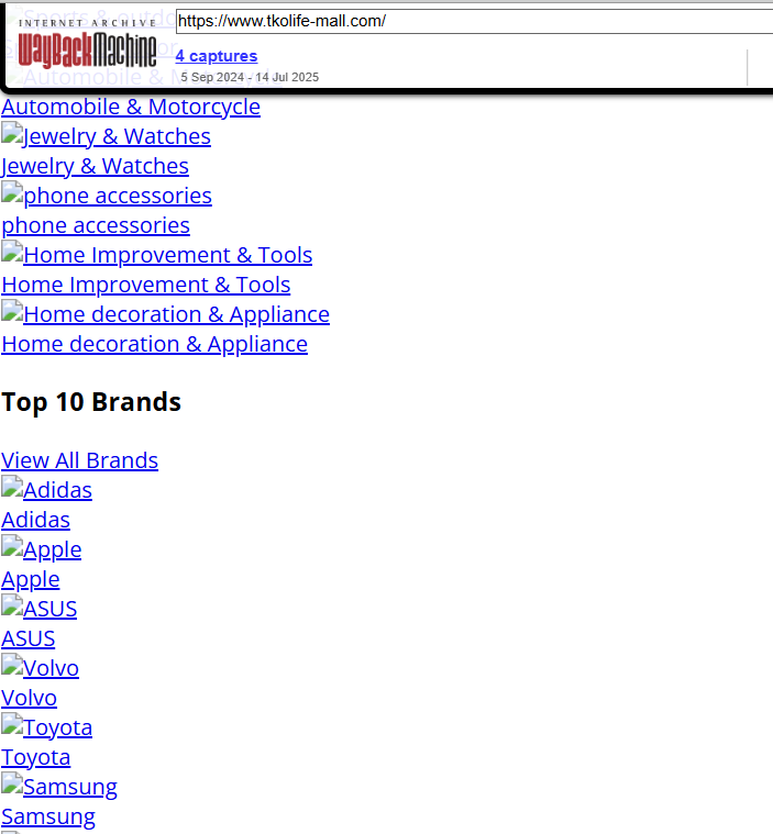 Дополнительный анализ через Web Archive показал, что в 2024 году на адресе TkoLife-Mall com располагался интернет-магазин с разными товарами.Принадлежал ли он владельцам площадки по заработку, неизвестно, так как об их связи никакой информации нет, поэтому вполне вероятно, что 25.07.2025 домен выкупил кто-то другой. Аккаунтов в социальных сетях у проекта нет, поэтому по другим параметрам его проверить нельзя, а это может говорить о малом сроке существования сервиса, так что проверенным его называть не стоит.