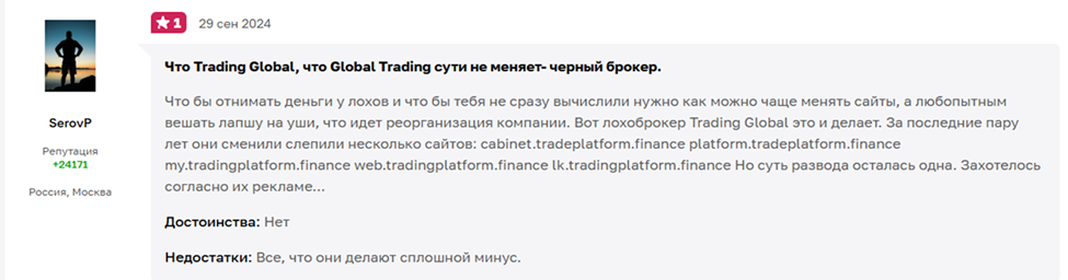Но вывести деньги со счета не представляется возможным. Аккаунт мгновенно блокируется, а менеджер перестает отвечать. Отзывы на Tmglobal подтверждают наличие этой схемы.